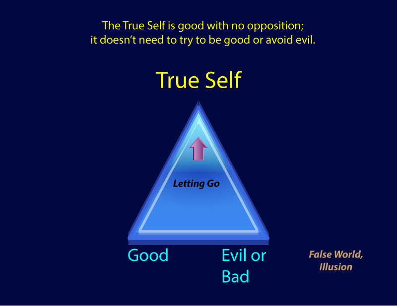 Good and evil rests at the core of the illusion. Often it takes on a different form, like positive and negative; but ultimately, judging another as negative means that we’re seeing negativity as evil. Good and evil was the way humans gave God an opponent to battle. God originally represented our perfect True Self; therefore, the opponent of God is our OWN false self projected out into the world. The final battle isn’t in the outer world. It’s in our mind. It’s initiation.